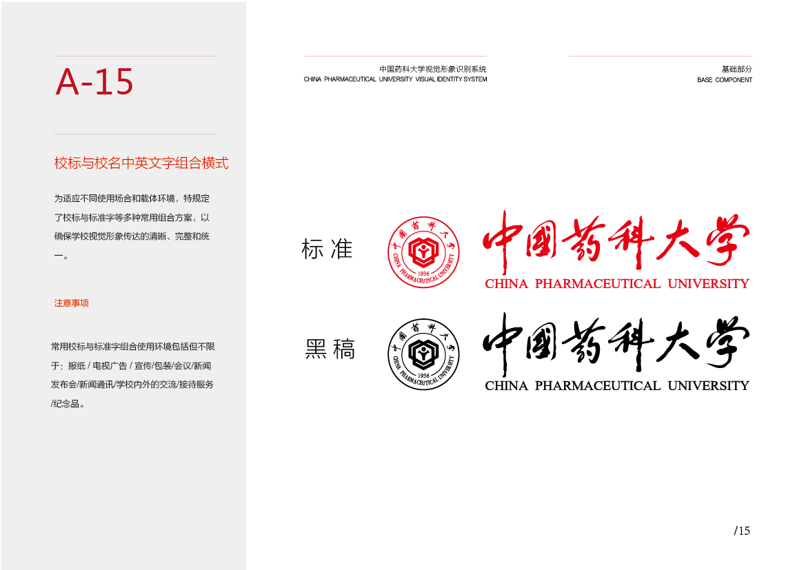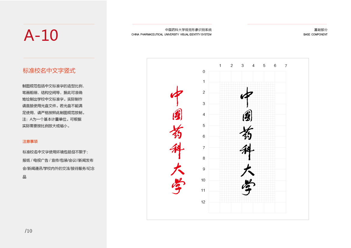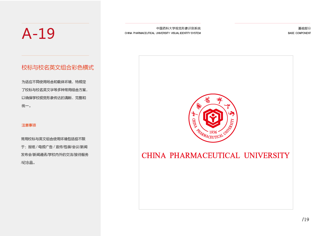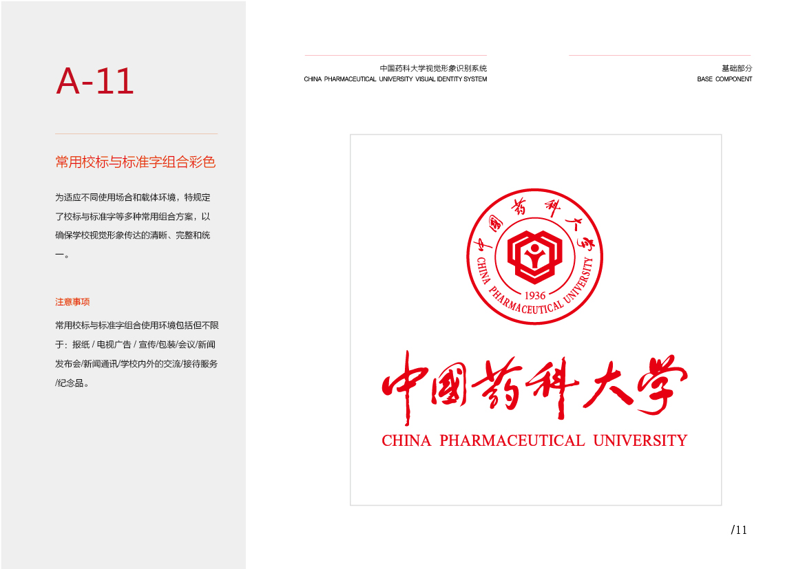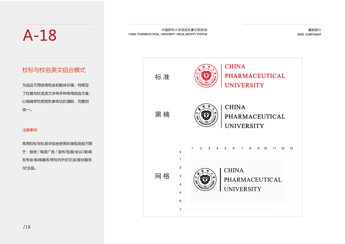本系统内容分为基础系统和应用系统两大部分。其中基础系统包括校标、标准色、校名中英文标准字体及其组合等基本形象元素的规范性描述,各单位在使用中,应严格遵守。应用系统是基础系统在各个应用领域的使用规范总和,其中有关校标、标准字、标准色的用法也应严格遵守本系统相关规定,但本系统所列有关实际应用物品的形状、款式、材料、工艺等方案仅为示意,各单位在实际应用中可以根据具体情况酌情参考使用。