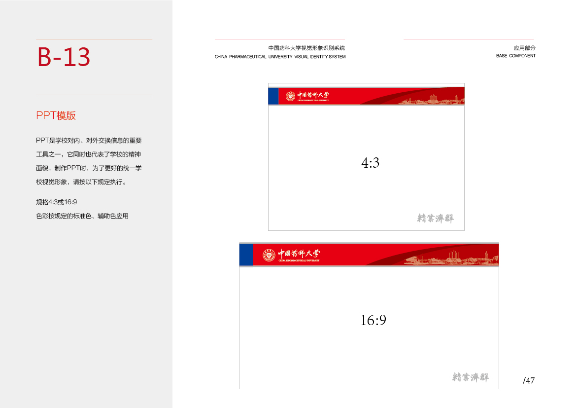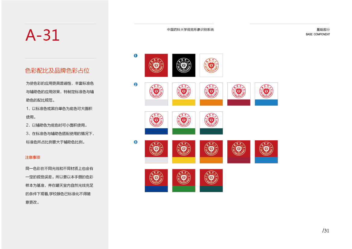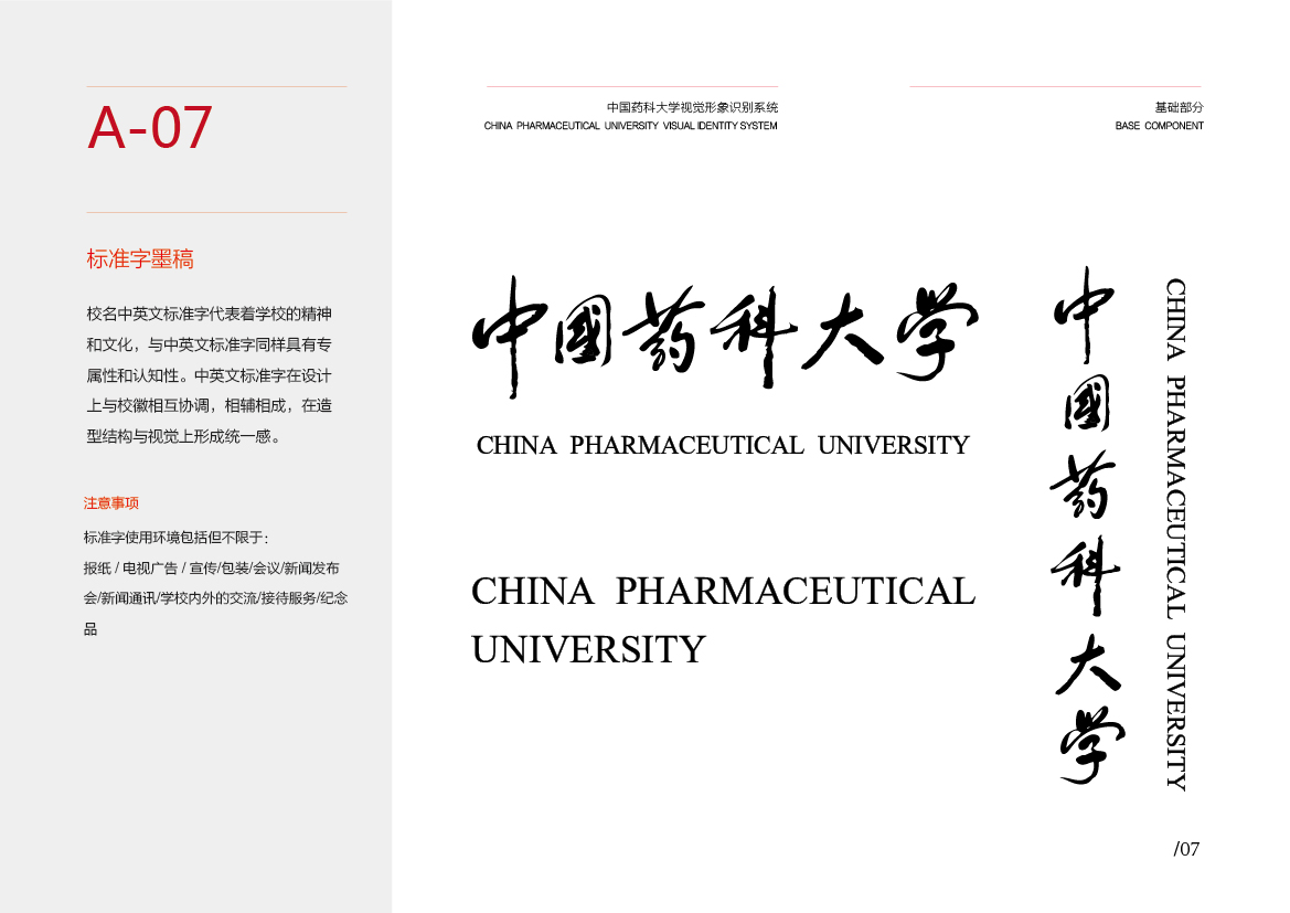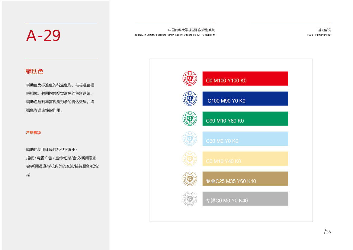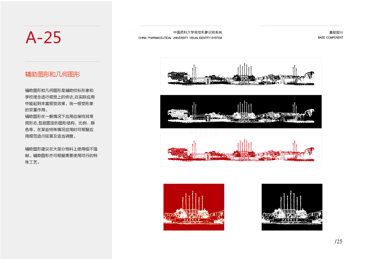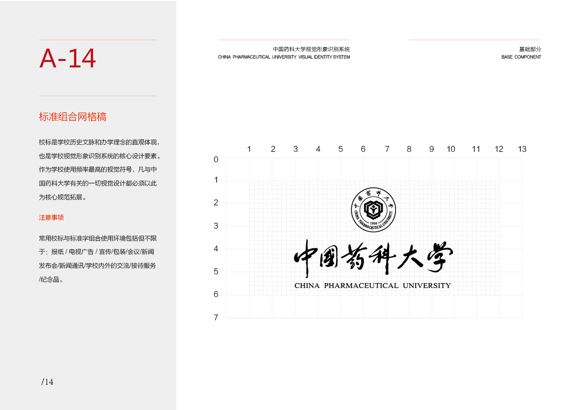 本系统内容分为基础系统和应用系统两大部分。其中基础系统包括校标、标准色、校名中英文标准字体及其组合等基本形象元素的规范性描述,各单位在使用中,应严格遵守。应用系统是基础系统在各个应用领域的使用规范总和,其中有关校标、标准字、标准色的用法也应严格遵守本系统相关规定,但本系统所列有关实际应用物品的形状、款式、材料、工艺等方案仅为示意,各单位在实际应用中可以根据具体情况酌情参考使用。